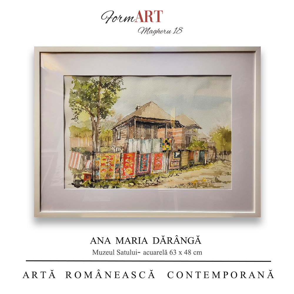 Ana Maria Dărângă – Muzeul Satului, acuarelă, dimensiuni 63 x 48 cm, lucrare originala, semnata.