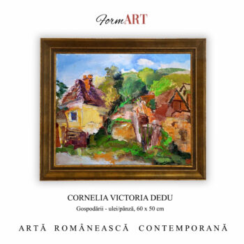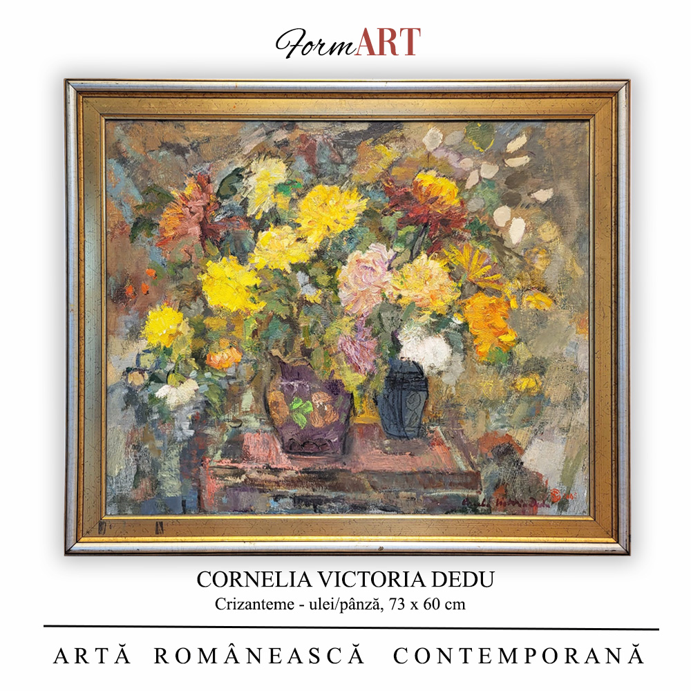 Cornelia Victoria Dedu – Crizanteme, În curtea Glodenilor, dimensiuni 73 x 60 cm ,ulei/pânză, lucrare originala, semnata.