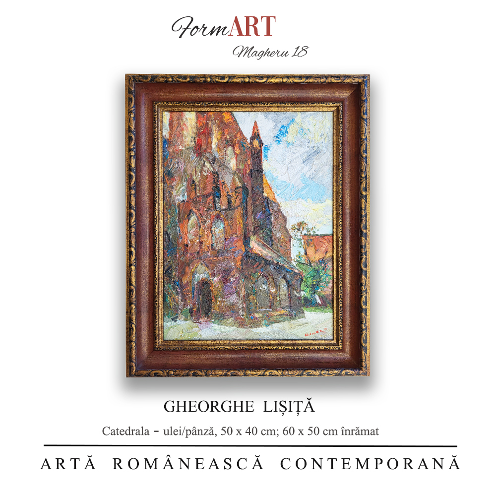 Gheorghe Lișiță- Catedrala, ulei/pânză, dimensiuni 50 x 40 cm; 60 x 50 cm înrămat , lucrare originala, semnata.