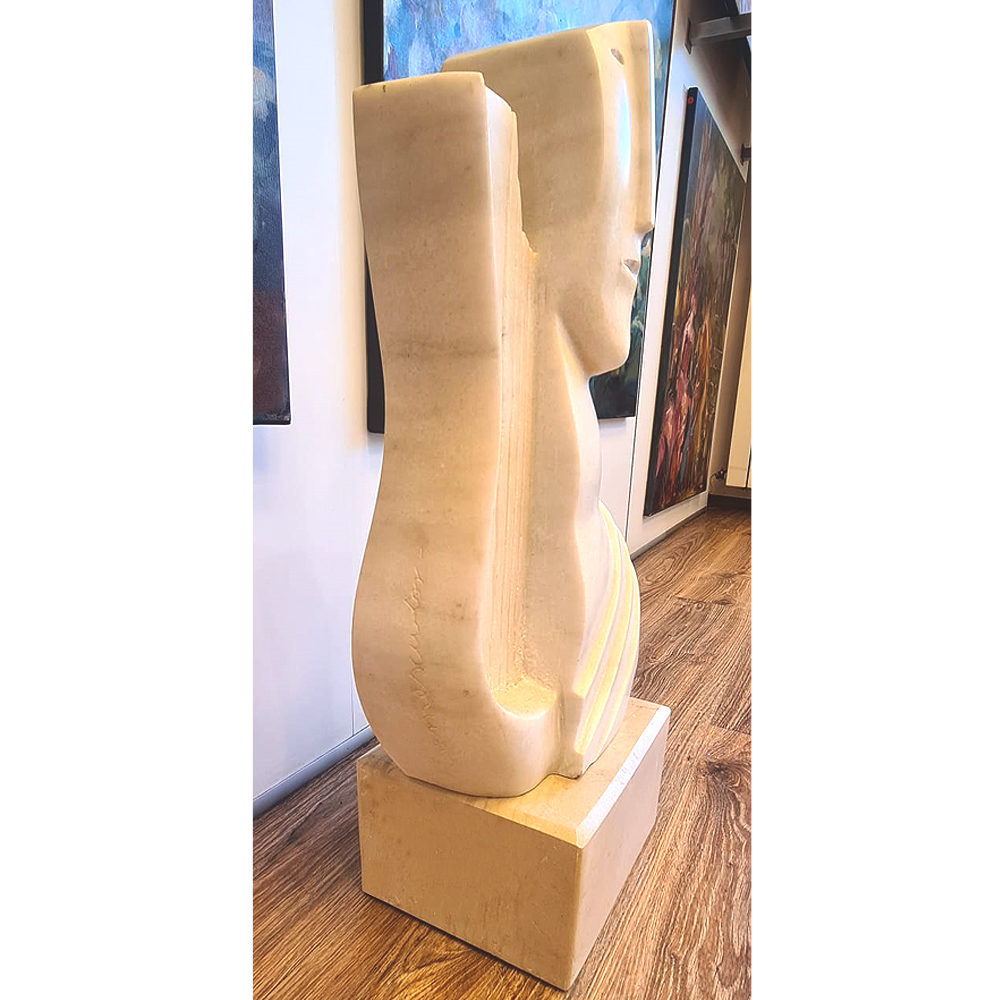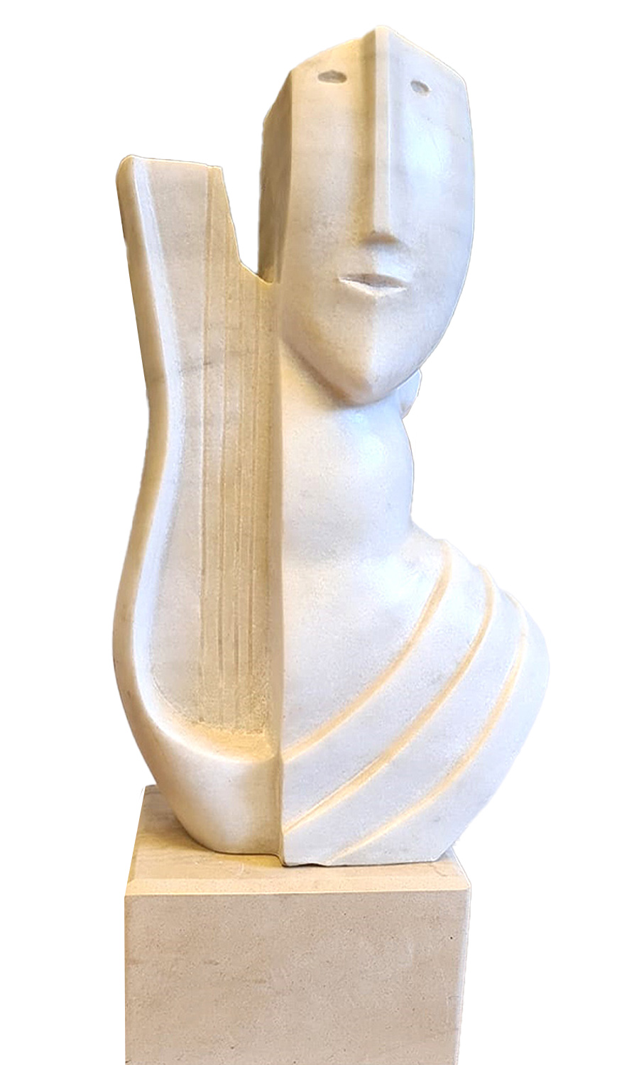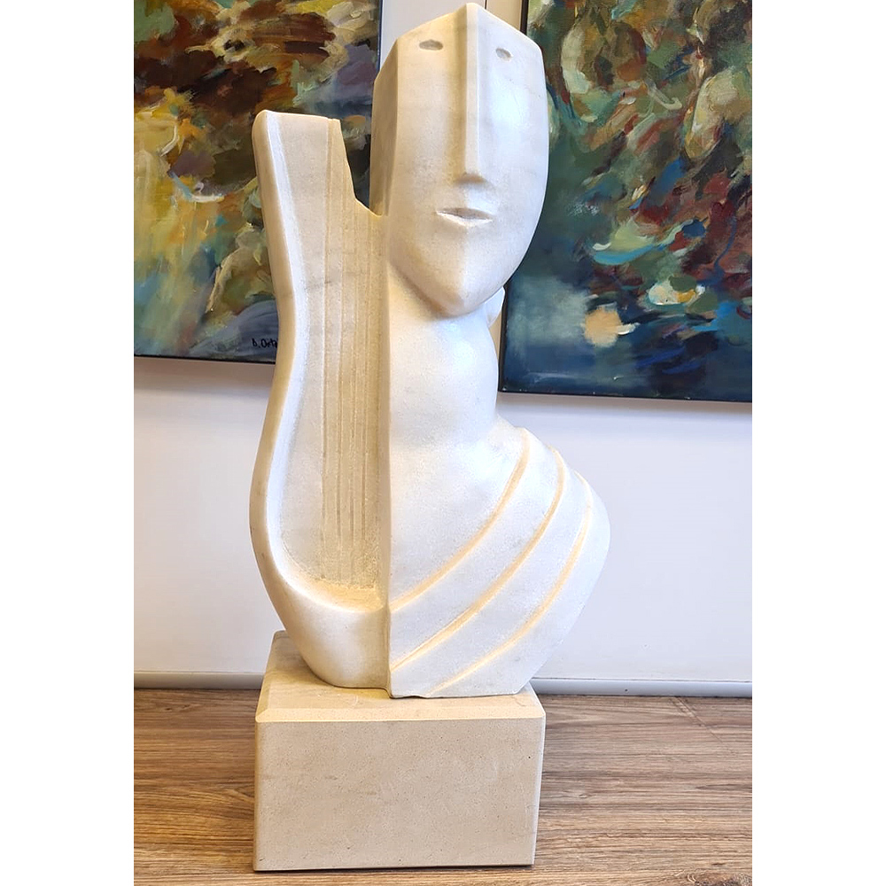 Ion Irimescu – The music of the stone, statueta marmura alba, dimensiuni 65 x 30 cm, din care soclu aprox.15 cm, semnat lateral Irimescu.