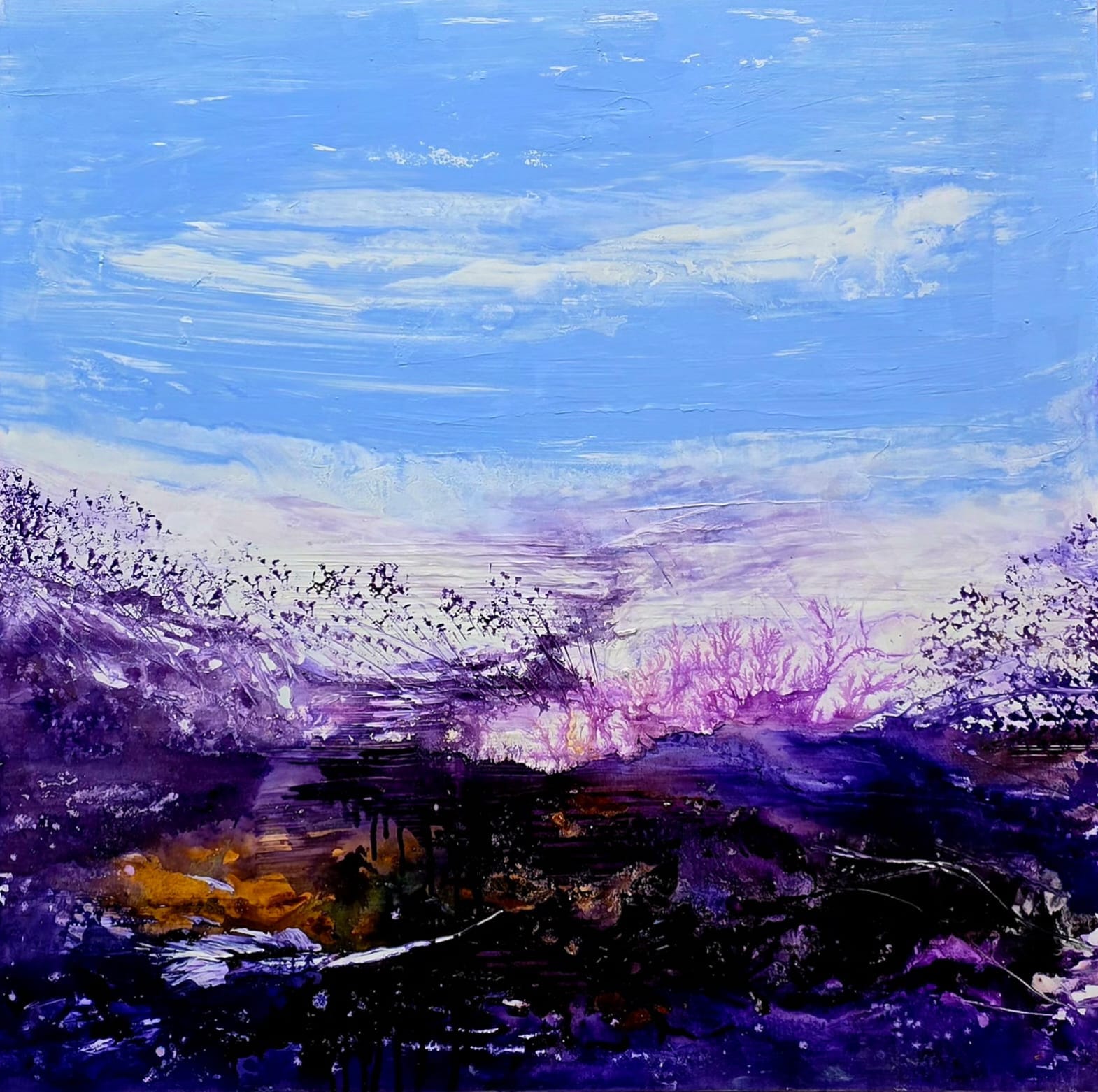 Lidia Zadeh – Violet, acrilic/pânză, dimensiuni 120 x 120 cm , lucrare originala, semnata.