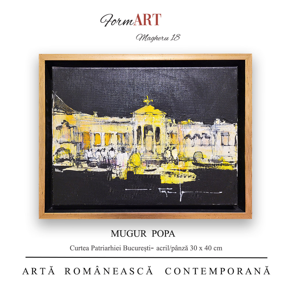 Mugur Popa – Curtea Patriarhiei (București), acril/pânză, dimensiuni 30 x 40 cm ( 35 x 45 cm), lucrare originala, semnata.